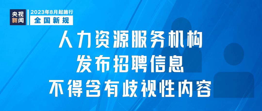 《人力資源服務機構管理規(guī)定》8月1日起施行。明確人力資源服務機構接受用人單位委托招聘人員的,發(fā)布招聘信息應當真實、合法,不得含有民族、種族、性別、宗教信仰等方面的歧視性內容。