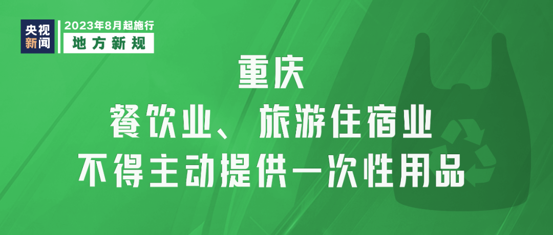 《重慶市一次性用品目錄清單管理辦法》8月1日起實施,要求重慶市餐飲業(yè)、旅游住宿業(yè)不得主動提供一次性用品,鼓勵使用易降解、可回收再利用的綠色環(huán)保產品。外賣平臺應積極引導消費者減少使用一次性用品。
